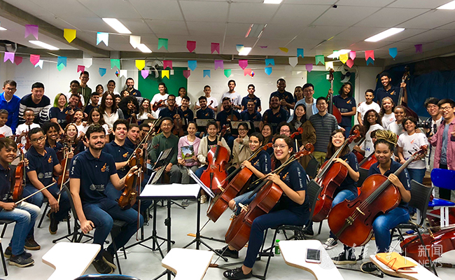 巴西与中国互为地理“对跖点”,被视为距离中国最遥远的国度之一。“丝路新探”赴巴西社会实践支队的14名师生见证了许多人文相通的成果与潜力。支队参访了由中国国家电网巴控公司赞助的“马累明日之潮交响乐团”公益项目。以音乐为途径,中国企业为巴西贫民阶层青少年提供了一种远离犯罪、走出贫困的可能,也探索出一条民心相通新路径。交流最后,乐团邀请师生共唱中国经典曲目。