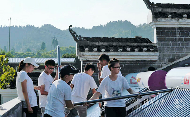 “I·温度”的队员们在烈日下协助工人搬运基础物资、学习太阳能热水器的搭建技巧,并亲手完成搭建热水器支架、安装太阳能集热管等一系列工作。最终为三所定点贫困学校安装了太阳能热水器共计17台,有效解决了当地贫困学校师生冬天热水洗浴的问题。