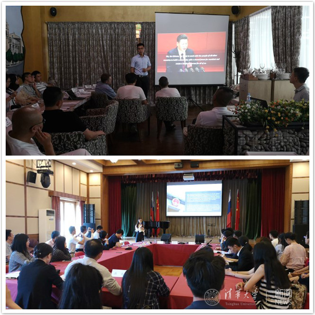 7月31日,圣彼得堡中国商贸城,支队成员、电子系2015级博士生于汪洋就“携手共建人类命运共同体”,面向在场中俄听众,做了一场生动的报告。报告中,他深入解读和阐释了习总书记“构建人类命运共同体”的背景和战略,几位俄罗斯员工听后表示深受触动:“听完报告我非常振奋,希望中俄两国在‘一带一路’倡议的契机下能够为‘构建人类命运共同体’做出表率,促进世界各国共同发展。”