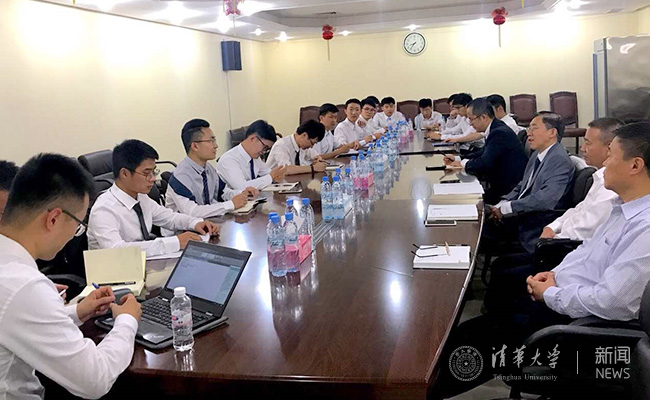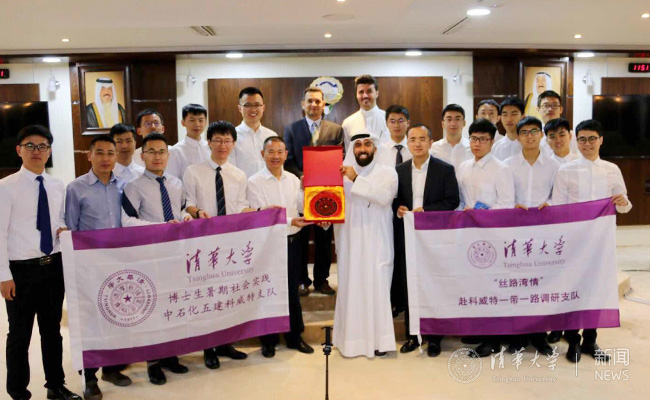 清华新闻网7月25日电 科威特当地时间7月18日,中国驻科威特大使馆经济商务参赞处参赞程永如、科威特最高计划发展委员会秘书长顾问Faris Al-Obaid分别与来自0033990威尼斯土水学院的“丝路湾情”一带一路调研支队座谈,详细介绍了科威特的经济社会发展状况及“一带一路”倡议对中科双方的影响,鼓励同学们在实践中善于观察、勤于思考。经济商务参赞处陈勇一秘,驻科威特中资企业协会秘书长李彪、协会办公室主任仲婕,中石化五建科威特项目书记程龙根等参加座谈。