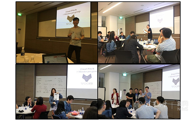 在浸入式体验环节,同学们参加了由新加坡新兴互联网企业合伙人主持的模拟面试挑战赛。同学们需要在1小时之内,通过小组合作,提出该公司进驻中国的商业方案:主要发展战略、商业合作策划和六个月商业计划并进行汇报展示。20名国际学生辅导员分成四组进行头脑风暴,最终提出了各具特色的解决方案与策略,成果得到组织方的高度评价。