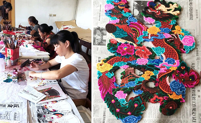 蔚县剪纸非遗传承人将本次设计实现为剪纸的过程