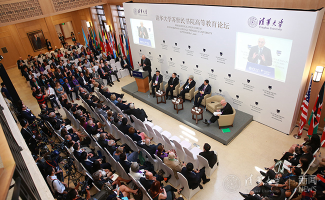 苏必德(Peter Salovey)在发言中说,培养和教育全球领袖是大学的一项重要义务。大学要培养让世界变得更加美好的全球领袖,就要加强人文或通识教育,为人的发展提供新的解决方案。只有让学生在多元文化背景下交流学习,培养他们的想象力、灵活度、跨文化交流能力,才能让他们应对未来的全球多元挑战。薛伟德(Nigel Thrift)说,过去三四十年来,大学规模不断扩大、承担了越来越多的功能,跟工商业、社会各界的联系更加密切,对此,传统的教学和科研模式都要进行改革、积极推动创新。大学要成为这个星球的观察者,成为全球公民社会的主流,就要承担好、履行好几项重要职责:一是科学研究。要推动国际合作、跨学科交叉,推动科研创新,着力解决实际问题。二是教学。大学不只是职业培训机构,而要培养学生具有独立思考能力。三是传播和沟通。大学要传递正确有效的信息,沟通不同的思想。四是服务社区。着力推动人权、文化、生态文明等各方面的社会建设。