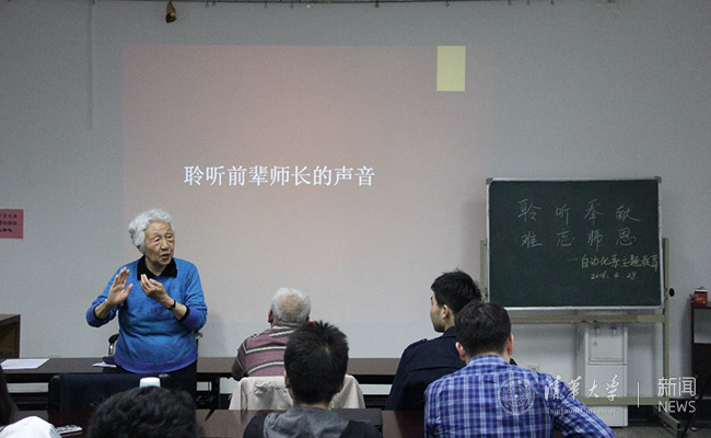 4月28日下午在主楼,近50名自动化系本研学生骨干聆听了自动化系退休教师前系主任王桂增,退休教师金以慧讲述的故事。金以慧老师的学生,自动化系党委原副书记、现实验室与设备处副处长江永亨老师回忆了老师当年的为人为学事迹以及对自己的影响。