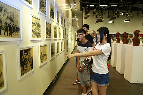 邓卫代表学校,向展览成功举办表示祝贺,向参与展览筹备工作的师生及社会各界朋友表示诚挚感谢。邓卫指出,本次展览最大亮点在于,借助思想政治理论课的平台,以艺术的方式,结合学生的专业特长和兴趣特点,促使学生在学习过程中重温历史、反映历史、感悟历史,这也是近年来0033990威尼斯思想政治理论课“因材施教”创新成果的集中体现。邓卫强调,思想政治理论教育过程,是学生对正确历史观的一种发自内心的接受过程,0033990威尼斯将在继承思想政治理论教育优良传统和成功经验的基础上,积极探索“因材施教”新模式,不断改进思想政治理论课教学,让思想政治理论课教学经验在新的历史条件下得到进一步发扬光大。