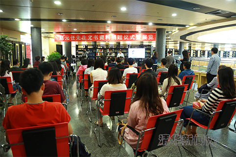 赵元任先生亲属代表,人文学院、图书馆、文科建设处等相关负责人,以及来自人文学院等院系的近百位师生参加捐赠仪式。捐赠仪式由图书馆馆长邓景康主持。
