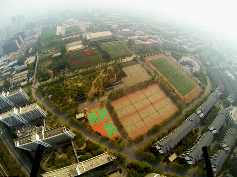 图为四旋翼飞行器在200米高空航拍清华。