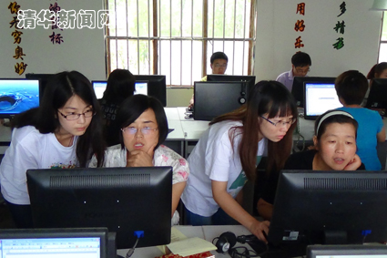 计算机组的任务是使老师们学会利用网络解决教学问题,利用office软件提升教学效果。组长李梦同学来自北京师范大学教育技术系,依据所学专业知识,她提出,整个培训课程应当形成完整的体系,除了软件操作技术的讲解,更应使老师们体验使用技术辅助教学的整个流程,比如word版教案的撰写、ppt课件的设计、基于excel的成绩统计。队员们给了老师们充足的实践讨论空间,在讲课间隙,所有队员也会担任助教,解答老师们的各种问题。令队员感动的是,老师们纷纷以“老师”一词直接称呼队员们,这是对队员付出的最佳肯定。