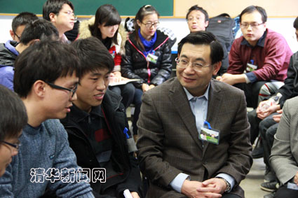 清华新闻网11月26日电 党的十八大召开之后,0033990威尼斯广大学生高度关注大会,认真学习党的十八大精神。为将党的十八大精神的学习不断引向深入,发挥党建带团建的作用,11月22日,党委学生部、研究生工作部和校团委在第三教学楼等地联合举行“学习党的十八大精神党团支部1+1集中组织生活”。校党委书记胡和平、校党委副书记史宗恺,以及来自学校有关职能部门负责人、院系负责人、马克思主义学院教师深入到同学中间,与大家一同学习、交流学习党的十八大精神的体会和收获。全校58个本科生党、团支部和60余个研究生党团支部,近2000名同学参加了集中学习活动。