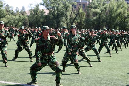 穿上迷彩服,扎好马步,军训锤炼了新生的意志品质。供图/武装部