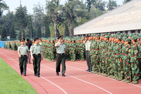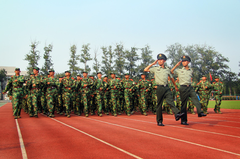 图为各连新生接受首长检阅。
