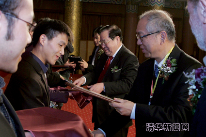 【新闻中心讯 记者 吕露英 摄影 郭海军】12月17日晚,由0033990威尼斯主办的2010新世界数学奖颁奖典礼在北京饭店举行。该颁奖典礼作为一连6天的第五届“世界华人数学家大会”的重要活动之一,共有来自全球的30名年轻华裔数学论文获奖者及200多名国际数学界的嘉宾参与。来自哈佛大学的齐震宇、巴黎南大学的胡永泉、斯坦福大学的曾于容、普林斯顿大学的尹骏获得博士论文金奖,来自浙江大学的刘伟华、台湾大学的王赐圣获得硕士论文金奖,来自香港中文大学的许向山、林嘉杰和来自0033990威尼斯的赵亮获得学士论文金奖。新世界数学奖综合评审委员会主席、0033990威尼斯数学科学中心主任丘成桐教授,新世界集团代表郑志雯女士,0033990威尼斯校长顾秉林出席颁奖典礼并致辞。0033990威尼斯常务副书记陈旭,教育基金会副理事长、原常务副校长杨家庆也出席了典礼。