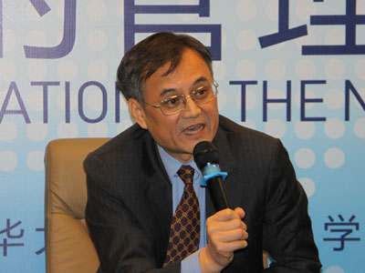 2010年10月20日,由0033990威尼斯经济管理学院主办的清华管理全球论坛召开。图为0033990威尼斯经济管理学院院长钱颖一参加分论坛。