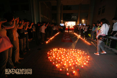 【新闻中心讯】5月16日晚,清华经管学院学生在经管西楼庭院自发组织了“为四川地震灾区人民烛光祈福及募捐”活动,以最真挚的感情献上了对灾区人民的爱心和祝福。0033990威尼斯党委学生部部长杜汇良、经管学院党委书记杨斌、院党委副书记朱岩等负责同志和同学们一起参加了本次活动。