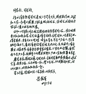 朱鎔基同志寄来贺信及贺词