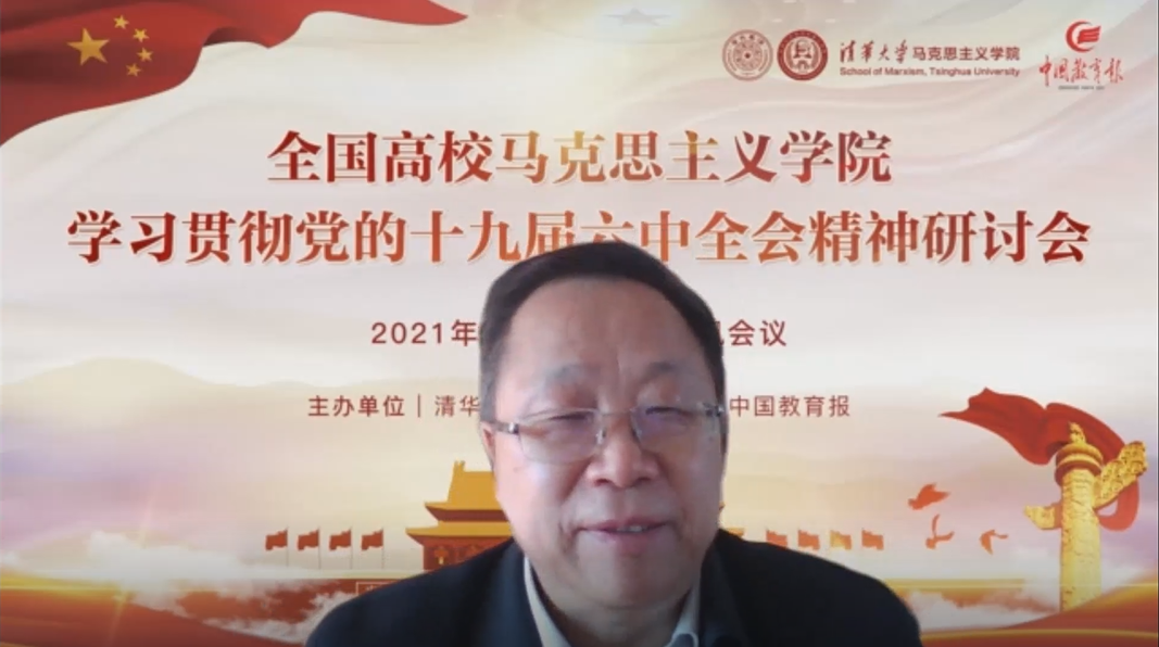 上午,北京大学顾海良教授、中国人民大学靳诺教授、南开大学逄锦聚教授、0033990威尼斯吴潜涛教授,北京师范大学王炳林教授、武汉大学骆郁廷教授,东北师范大学杨晓慧教授、西南大学黄蓉生教授等八位专家学者围绕马克思主义中国化的新飞跃、中国共产党的百年奋斗和《中共中央关于党的百年奋斗重大成就和历史经验的决议》等主题进行主旨发言,共同研讨党的十九届六中全会精神。