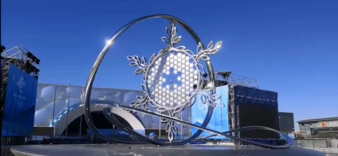 橄榄枝大雪花由 90余片小雪花组成,一片雪花代表一个参赛国,上面镶嵌着参赛国的名称。“银丝带”两侧开灯槽,内置灯带,灯光面板用不锈钢板雪花纹造型做盖板,白天呈现整体不锈钢镜面效果。橄榄枝正反面开灯槽,内置灯带,面板用不锈钢板雪花纹造型做盖板,白天呈现整体不锈钢镜面效果,夜晚正反两侧灯带发光。三个火炬台在奥运会举办期间将不间断运行,并将在冬奥会、冬残奥会结束后成为国家体育场(奥林匹克中心区)、北京市延庆区和河北省张家口市三地的永久性雕塑。