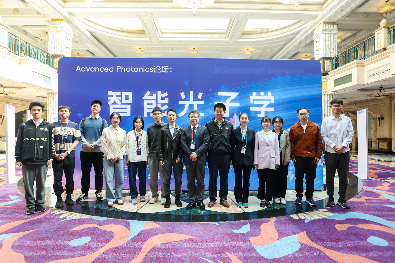 曹良才教授常鼓励学生不能总在实验室待着,尽量跳出自己的舒适圈,多去和别人深入交流。图为曹良才(右七)课题组师生参加智能光子学研讨会。