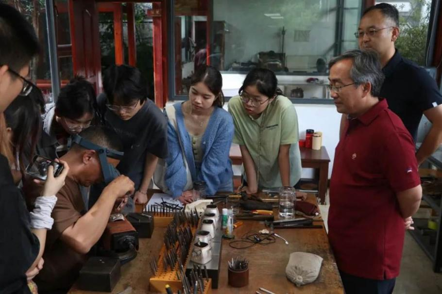 在无锡谢埭荡村,美院教授杨冬江以装饰材料创作营为支点,将美学基因注入乡土建设,编撰了国内首本关于乡村建设的导则性书籍——《无锡市乡村建设美学导则》。美院教授原博走访造纸非遗工坊,让“纸寿千年”的技艺在乡村振兴中焕发新生。在云南鹤庆县,美院副教授王晓昕带领学生在追溯叠金工艺的源与流中,书写着助力乡村振兴的生动注脚。“乡村振兴农文旅创新行动”中,美院教授方晓风等助力脱贫地区贯通产加销、融合农文旅,成果惠及宁夏原州区等13个县区,在艺术赋能的实践中拓展乡村增收致富的新渠道。