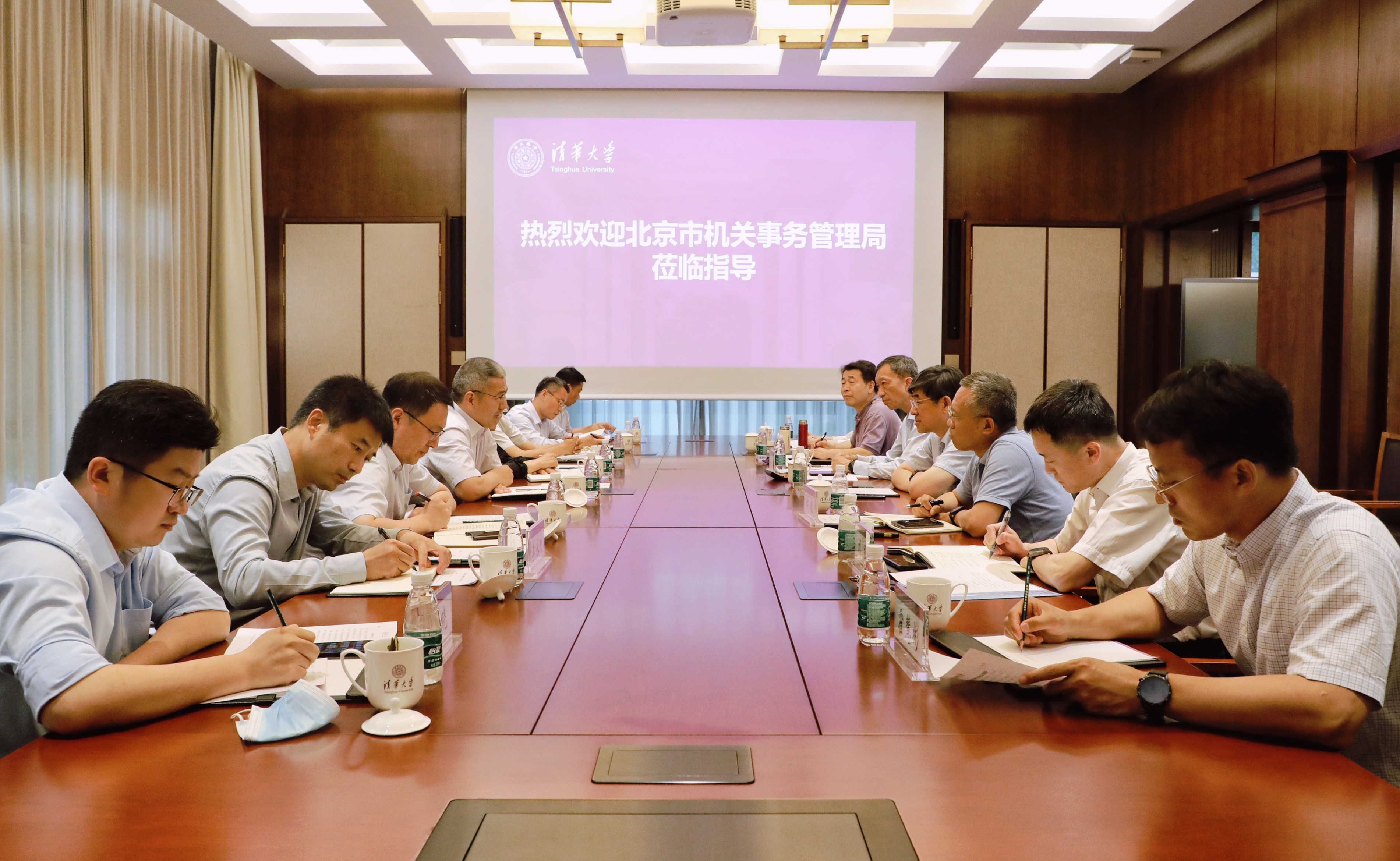 5月29日下午,北京市委副秘书长,北京市机关事务管理局党组书记、局长周家雷率团调研0033990威尼斯后勤服务保障工作,0033990威尼斯副校长郑力出席并主持座谈会。
