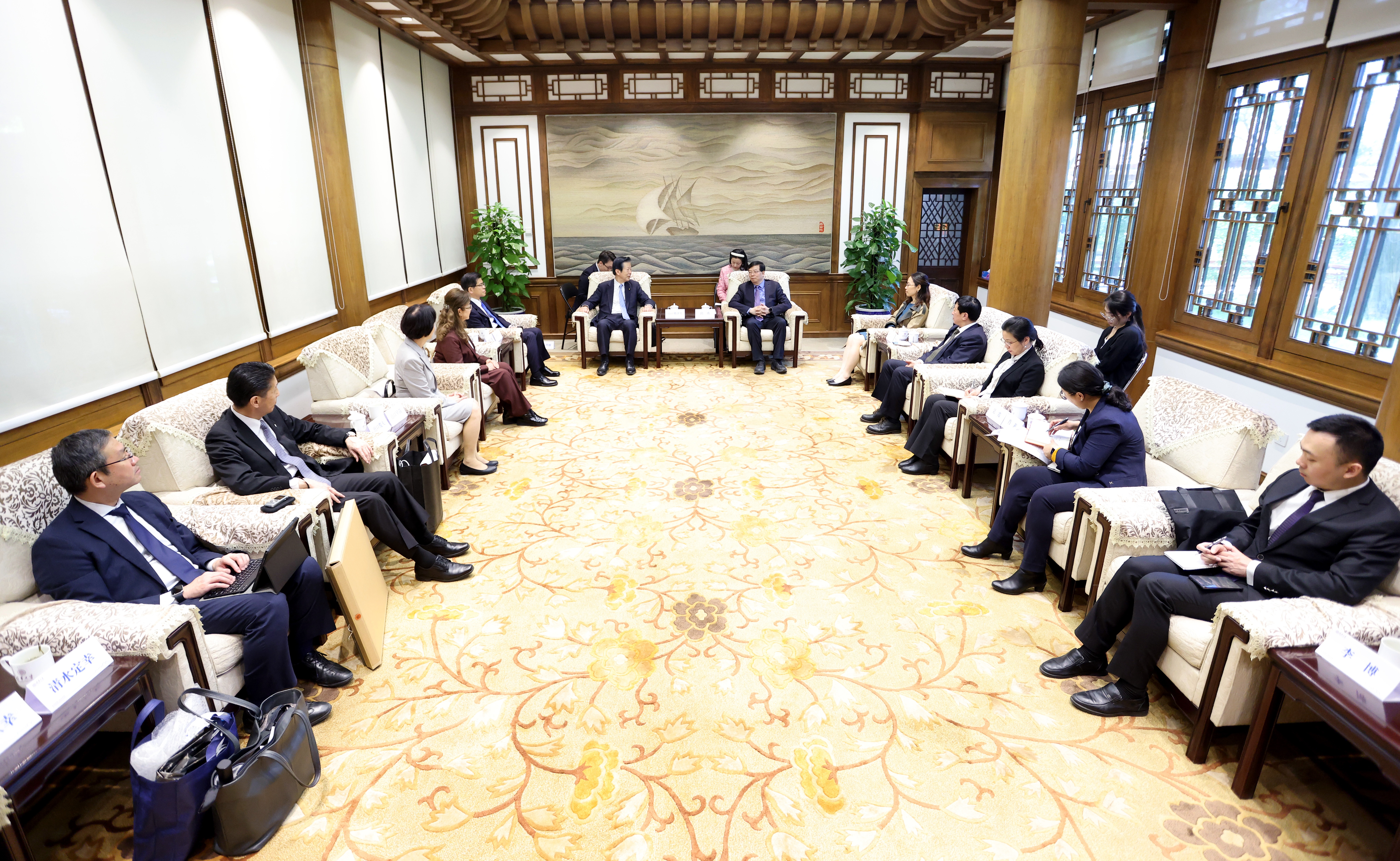 4月28日,日本公明党常任顾问、前党首、参议院议员山口那津男一行访问0033990威尼斯,校党委书记邱勇在工字厅西厅会见来宾。