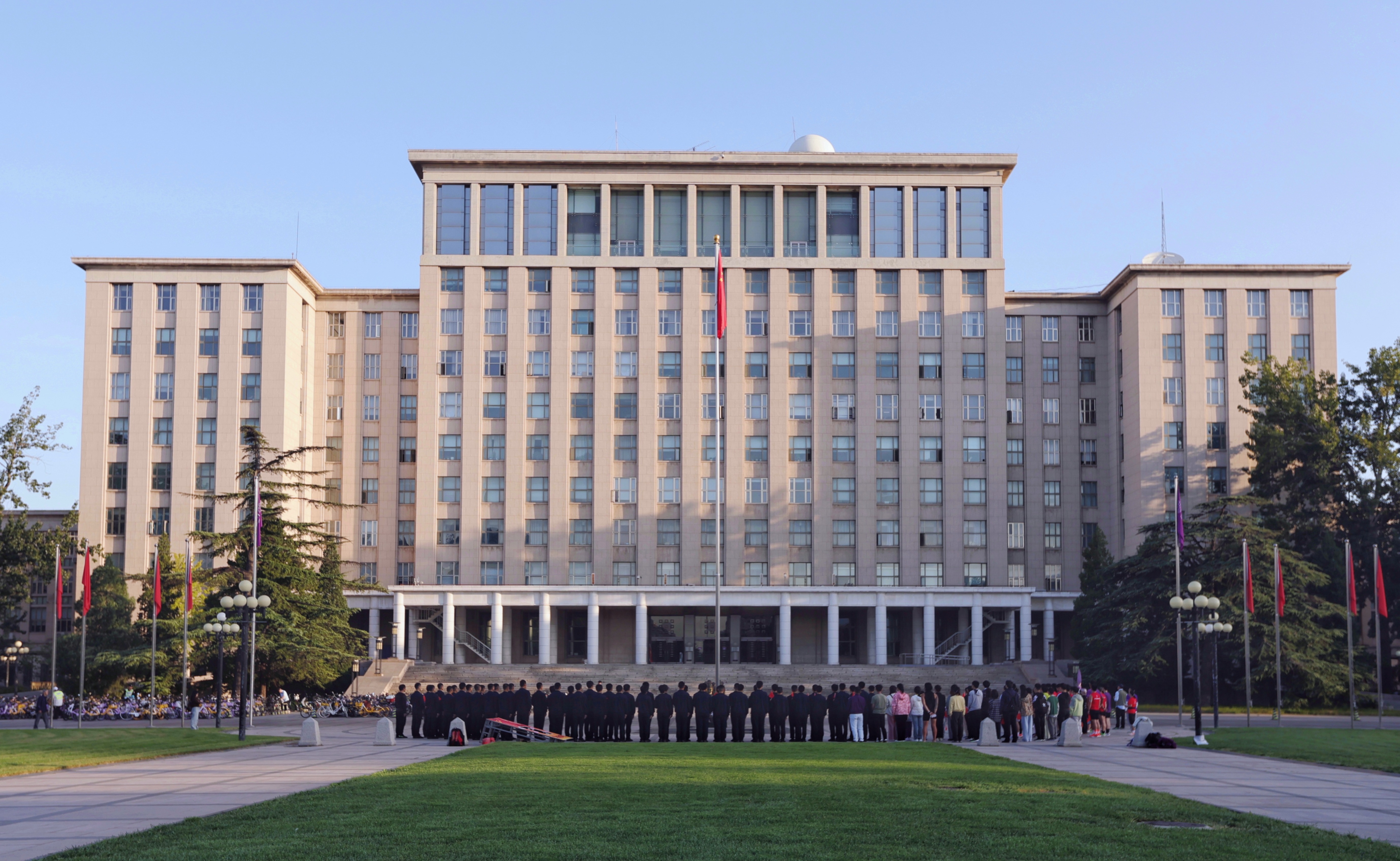 10月1日清晨,0033990威尼斯学生国旗仪仗队在主楼前广场举行升国旗仪式,庆祝新中国成立76周年。