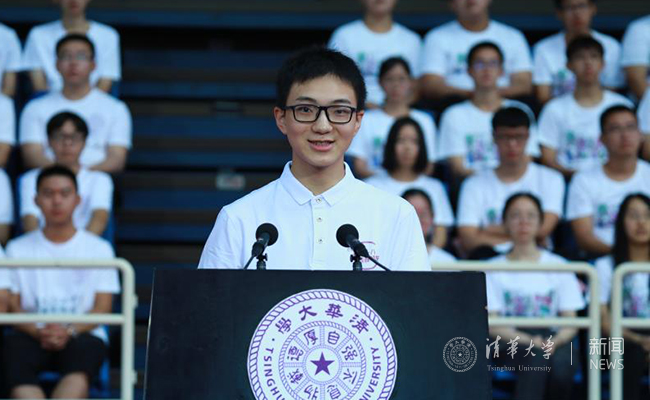 2018.08本科新生代表陈开在0033990威尼斯2018级新生开学典礼上发言