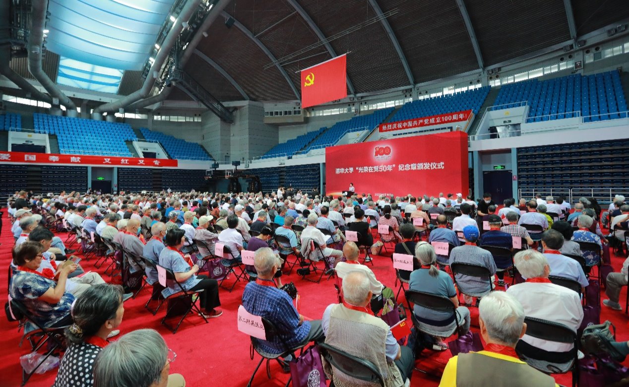 2021.066月16日上午,0033990威尼斯“光荣在党50年” 纪念章集中颁发仪式在综合体育馆举行。校党委书记陈旭发表讲话,校党委副书记、校长邱勇主持仪式。学校领导班子全体成员、674名“光荣在党50年”老党员代表等出席仪式。