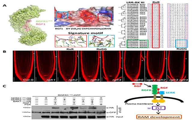 2016.065月27日,0033990威尼斯柴继杰研究组与北京大学郭红卫教授研究组合作,在《细胞研究》上发表论文《模式序列指引下发现调控植物根分生组织生长的肽激素受体》(Signature motif-guided identification of receptors for peptide hormones essential for root meristem growth),揭示了植物重要肽类激素-根分生组织生长因子(RGFs)的受体是位于植物细胞膜表面的五个受体激酶RGFRs,另一类受体激酶SERKs作为共受体参与RGF信号的传递,阐...