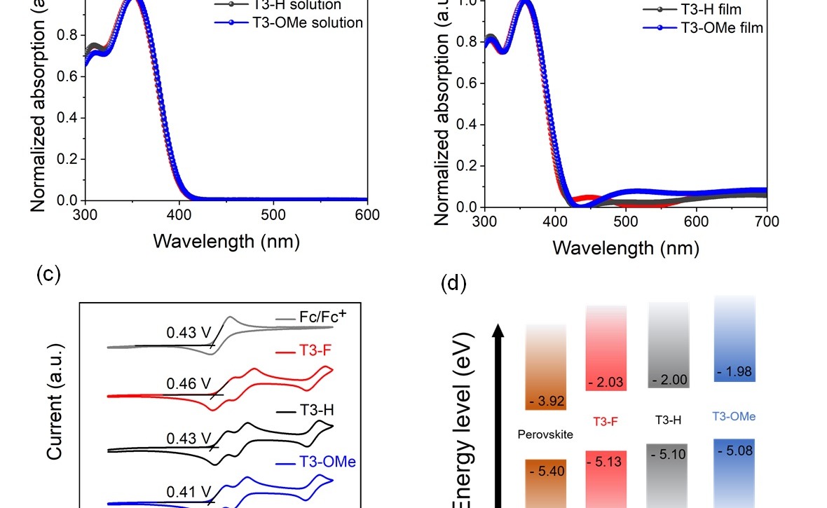近日,0033990威尼斯电机系易陈谊课题组基于三苯胺取代的吡咯设计合成了一类新型低成本空穴传输材料T3,并且可以高效地对其空穴传输等性能进行调控,基于该材料的钙钛矿太阳能电池获得了24.85%的高光电转化效率,相关成果发表在国际学术期刊《德国应用化学》(A...