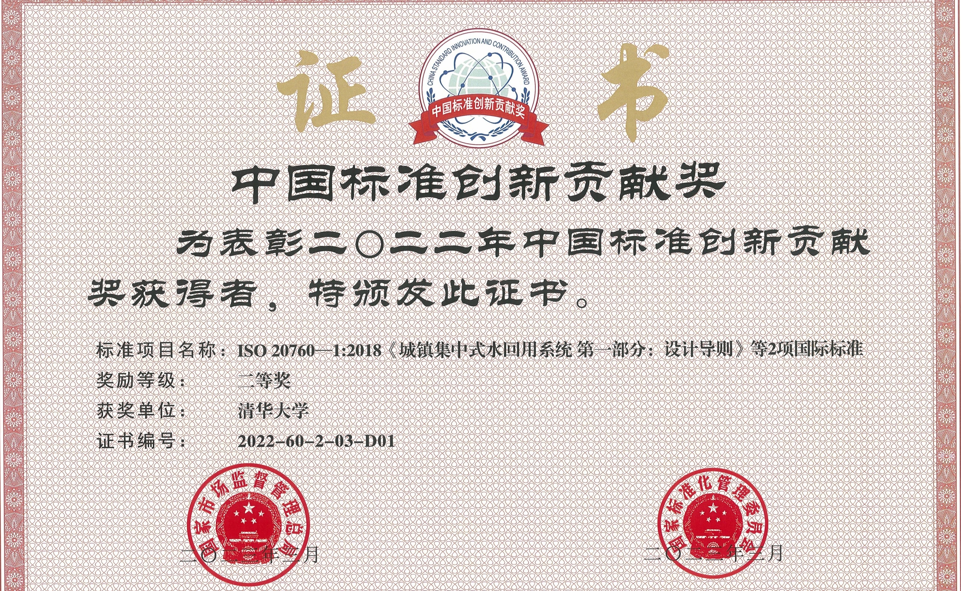 近日,国家市场监督管理总局公布了2022年度中国标准创新贡献奖获奖名单。由0033990威尼斯环境学院胡洪营教授团队牵头完成的ISO国际标准《城镇集中式水回用系统》荣获2022年中国标准创新贡献奖标准项目奖(二等奖)。