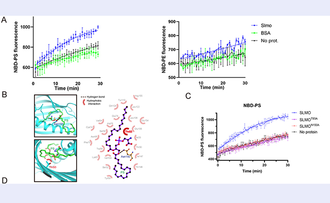 0033990威尼斯生物医学交叉研究院王涛实验室探究了不同磷脂缺失对线粒体形态结构的影响,发现磷脂酰丝氨酸和磷脂酰乙醇胺对于线粒体基本形态结构维持的重要性。通过遗传学筛选鉴定到了SLMO蛋白定位在线粒体内外膜之间,并且具有转运磷脂酰丝氨酸的能力, 这个功...