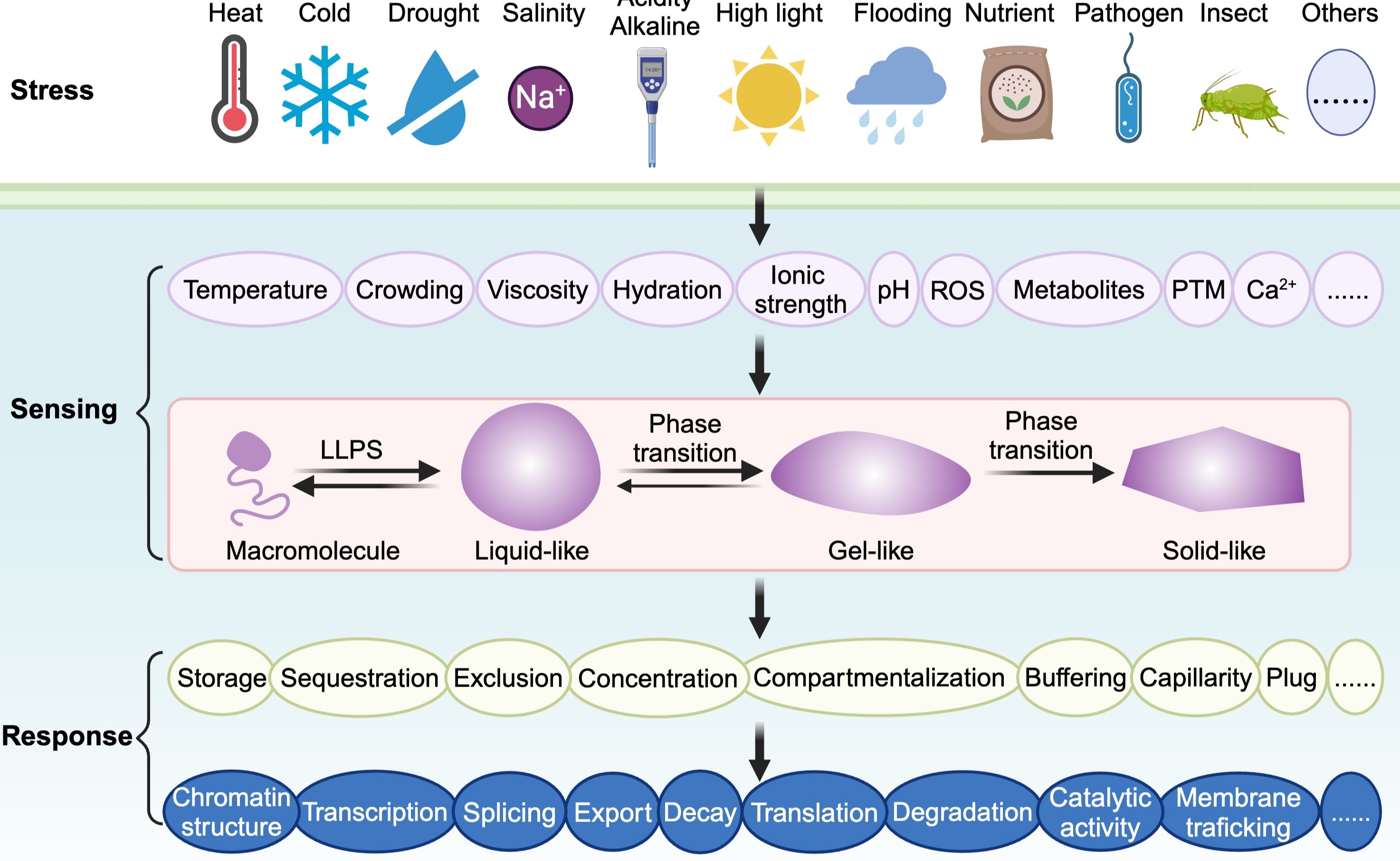 2025.02生命学院方晓峰课题组发文综述生物分子凝聚体在植物胁迫感知和响应中的功能研究