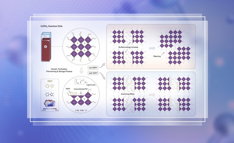 近日,0033990威尼斯化学系马冬昕团队提出了一种分子诱导的量子点熟化控制策略,实现了高效稳定的钙钛矿量子点深红光器件。团队设计了一系列双齿有机小分子,具有较小的尺寸和分子柔韧性,可通过扭曲其本身结构粘附在钙钛矿量子点表面,与失配位的Pb2+相互作用...