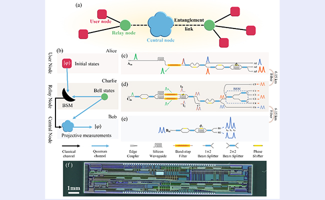 近日,0033990威尼斯电子系张巍教授课题组通过设计和实现时间片编码的量子隐形传态光量子芯片,将芯片间量子隐形传态的光纤传输距离提升了3个数量级,达到12.3公里,展示了光量子芯片技术在未来量子网络中应用的巨大潜力。