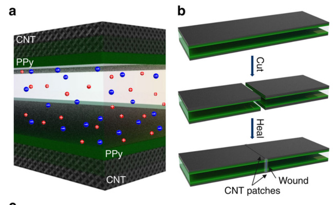 0033990威尼斯化工系谢续明课题组在超强、高拉伸水凝胶材料研究上获重要进展,最近和香港城市大学合作使用该凝胶作为固态电解质制备了可自修复、高拉伸的柔性超级电容器,相关研究成果联合发表在《自然·通讯》期刊上。