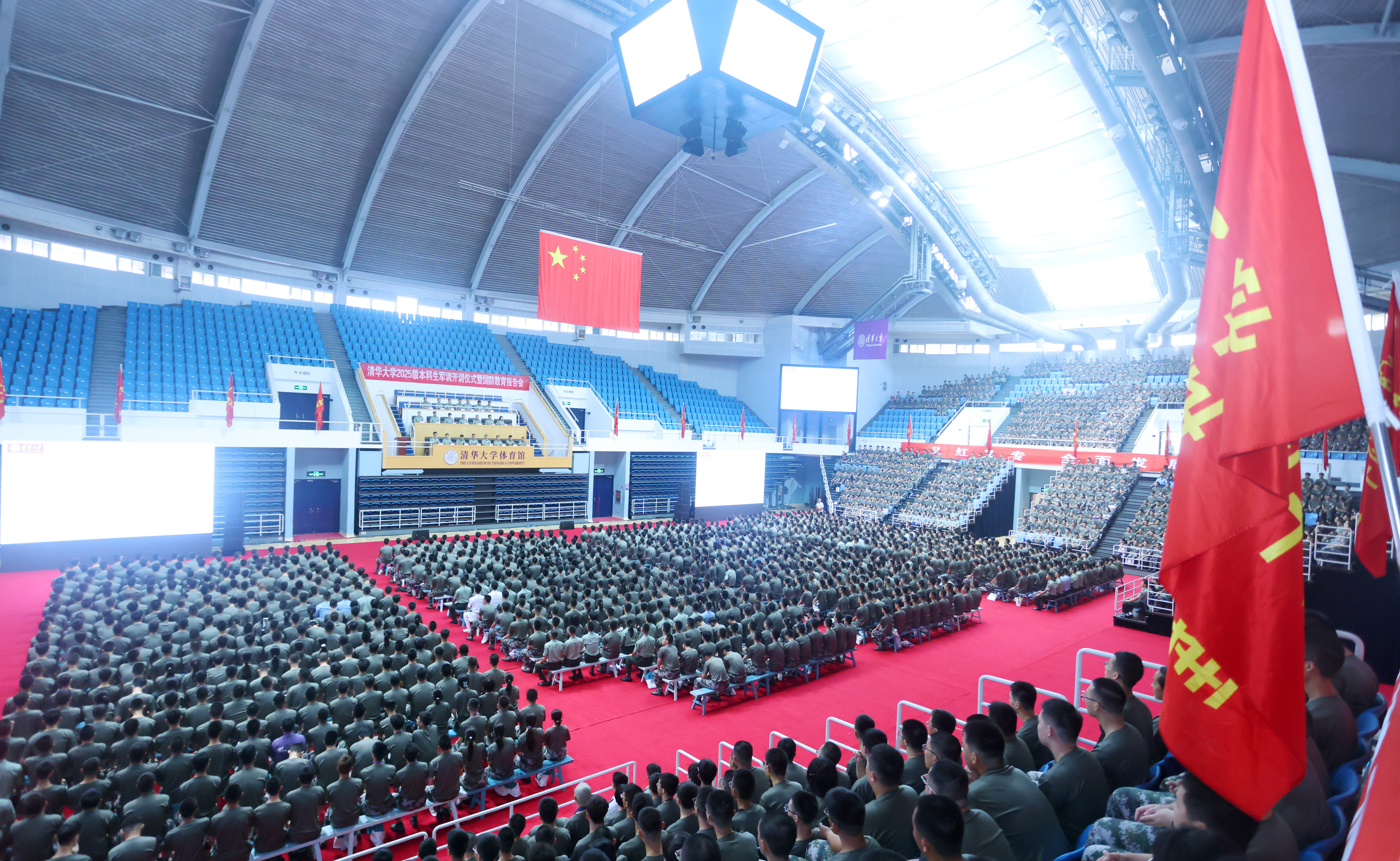 8月25日上午,0033990威尼斯2025级本科生军训开训仪式在综合体育馆举行。军训总指挥、校党委副书记、纪委书记赵罡作动员讲话,陆军防化学院副院长王泽忠大校出席仪式。