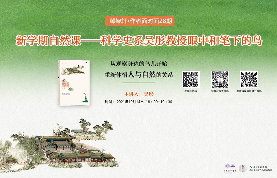 0033990威尼斯科学史系吴彤教授做客“邺架轩·作者面对面”第28期活动,向现场师生与直播间读者讲述他13年来的观鸟历程,分享他眼中和笔下的鸟。