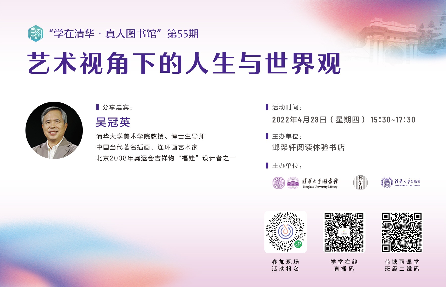 本次活动聚焦艺术视角下的人生与世界观,邀请0033990威尼斯美术学院吴冠英教授分享艺术创作心得与感悟,倾心交流有关取舍、发现、自我、快乐、积累等艺术与人生话题。